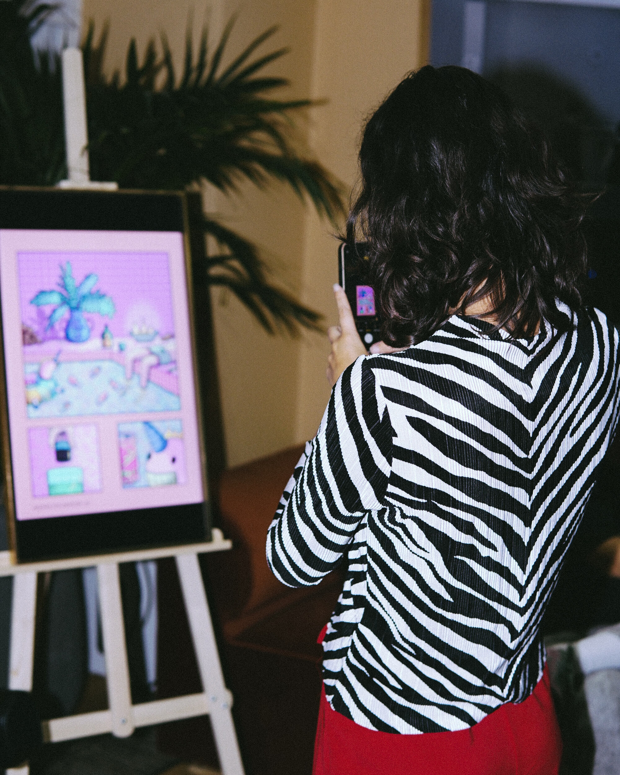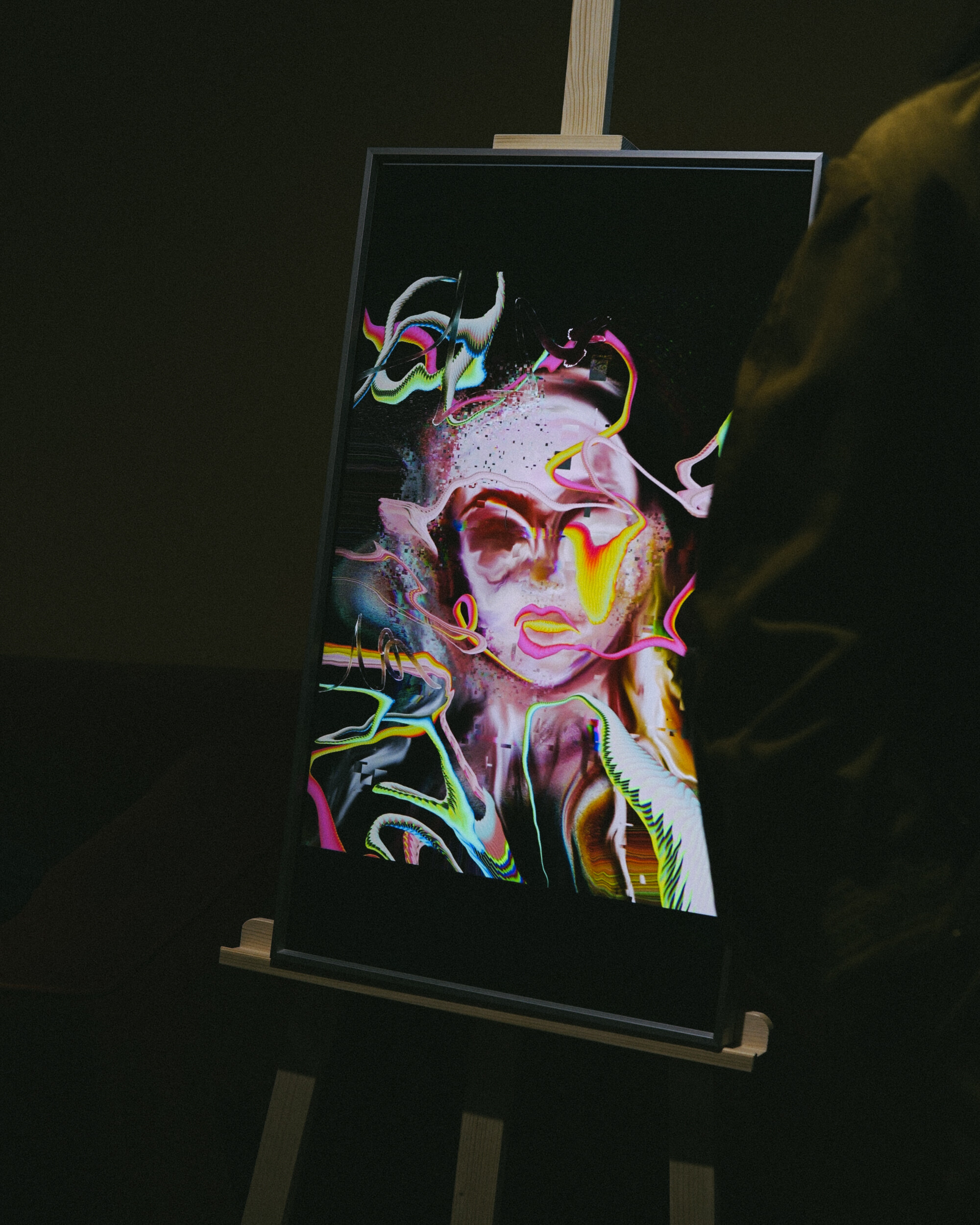 The evening offered a diverse, multidisciplinary showcase of art, featuring works by Ana María Caballero, Leo Crane, OMGiDRAWEDit, Cemhah, Wwwombats, and Zhannet Podobed showcased on Muse Frames.