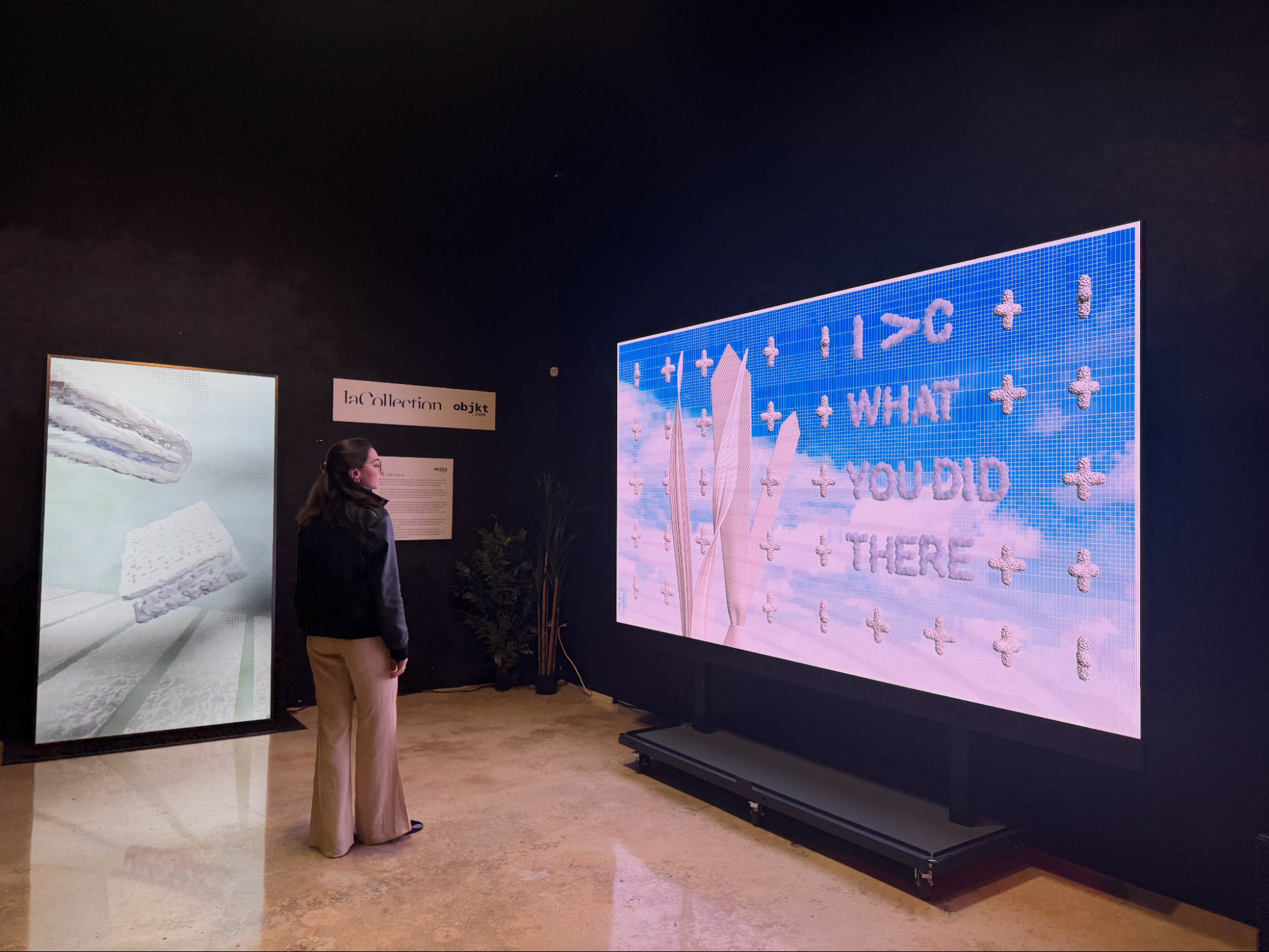 From December 3 – 8, presented alongside the physical installation, were new works by renowned artists Carla Gannis, Ana María Caballero, SamJ, Frank Lepkowski, Moises Sanabria, and Fabiola Larios, reflecting themes of identity, space, and belonging. Their works were released via objkt.one’s gallery.