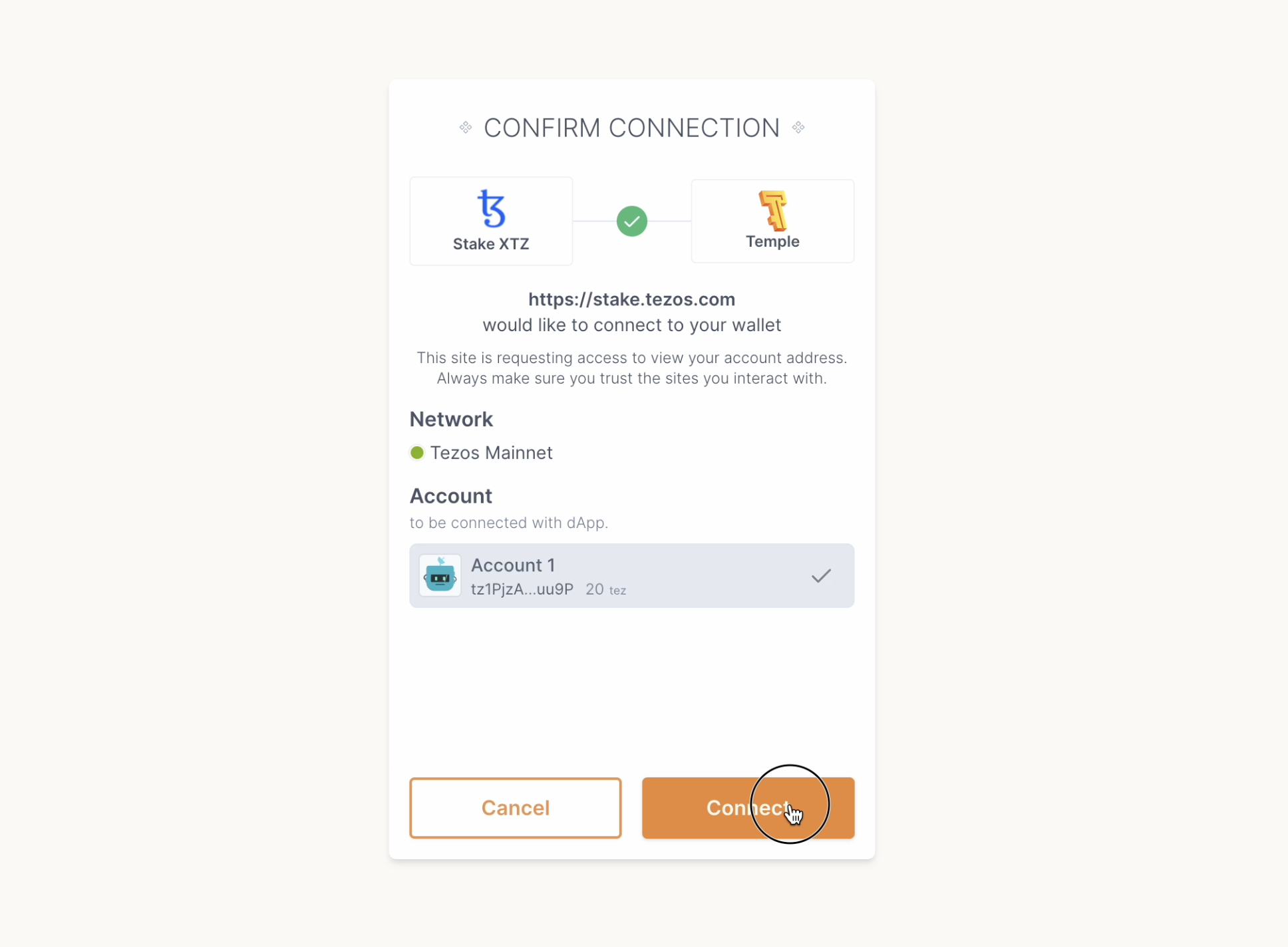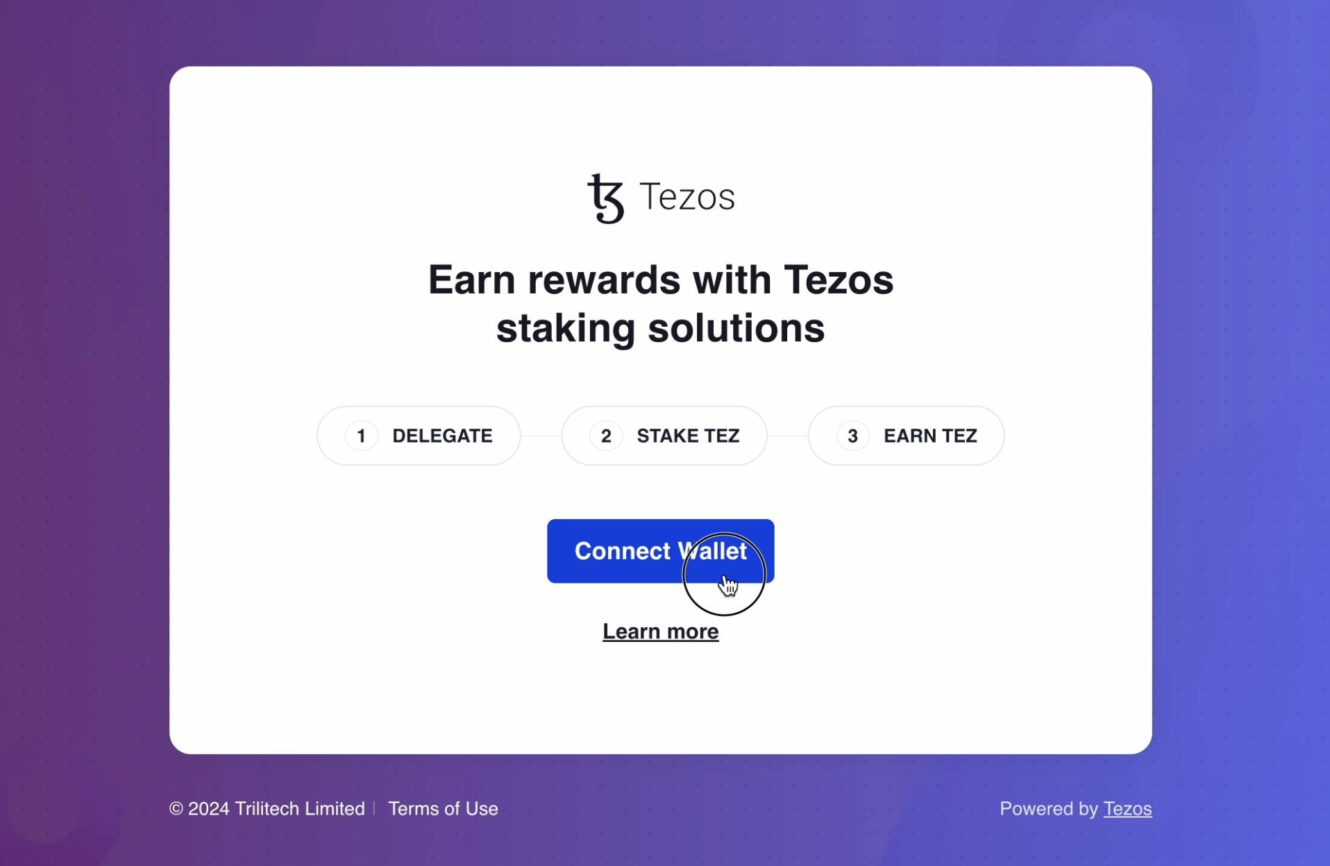 To get started, head to stake.tezos.com and click Connect your wallet.
