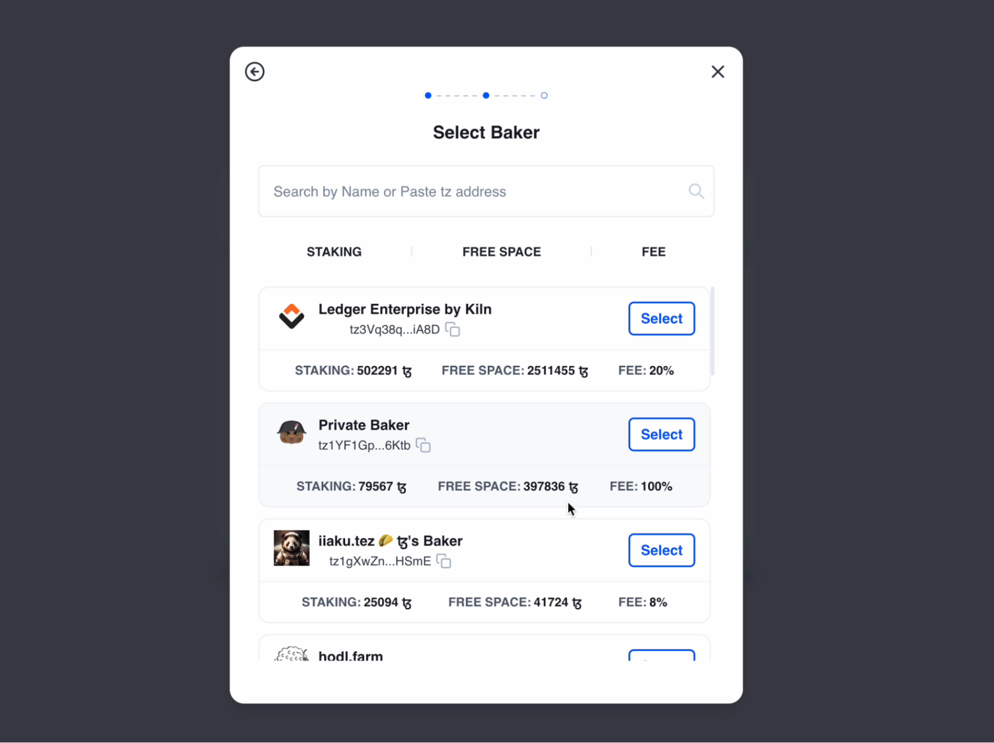 2. Delegate your tez to a baker of your choosing