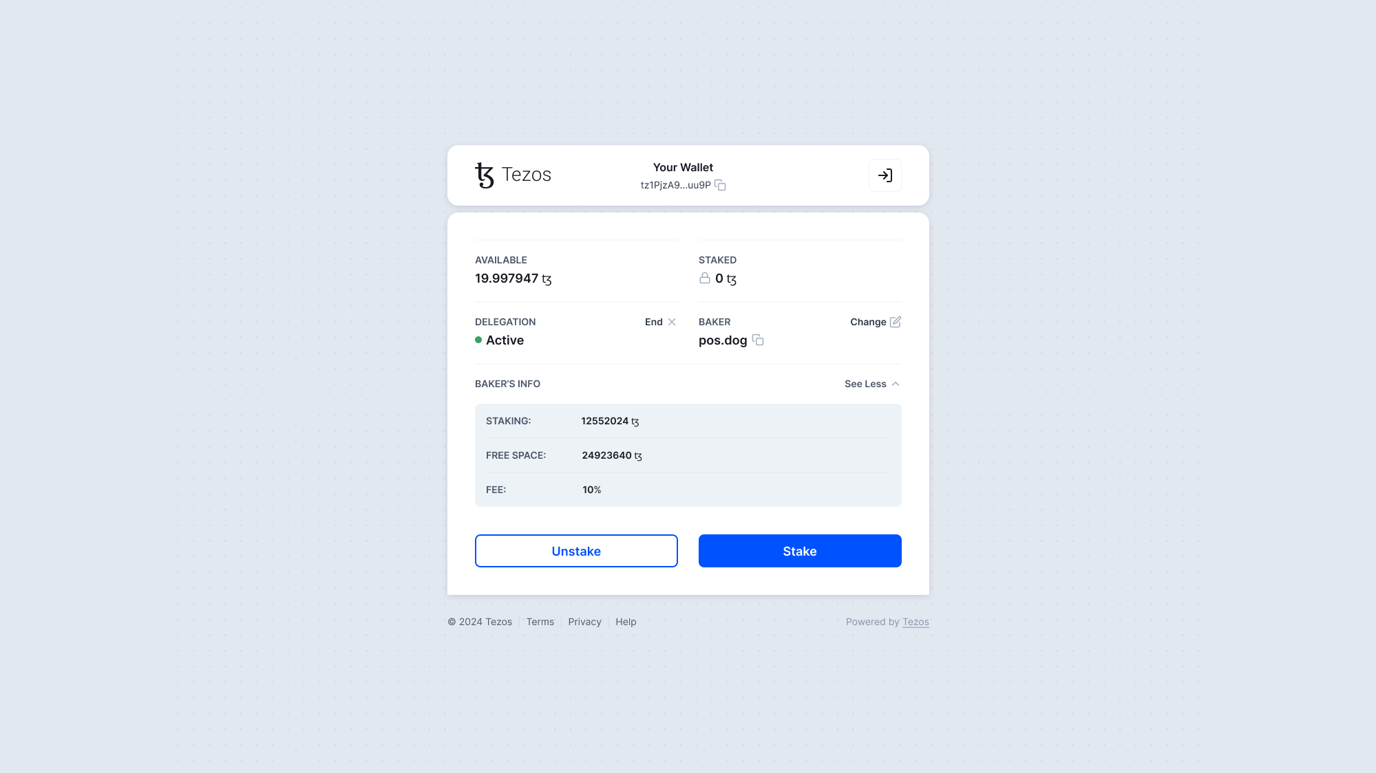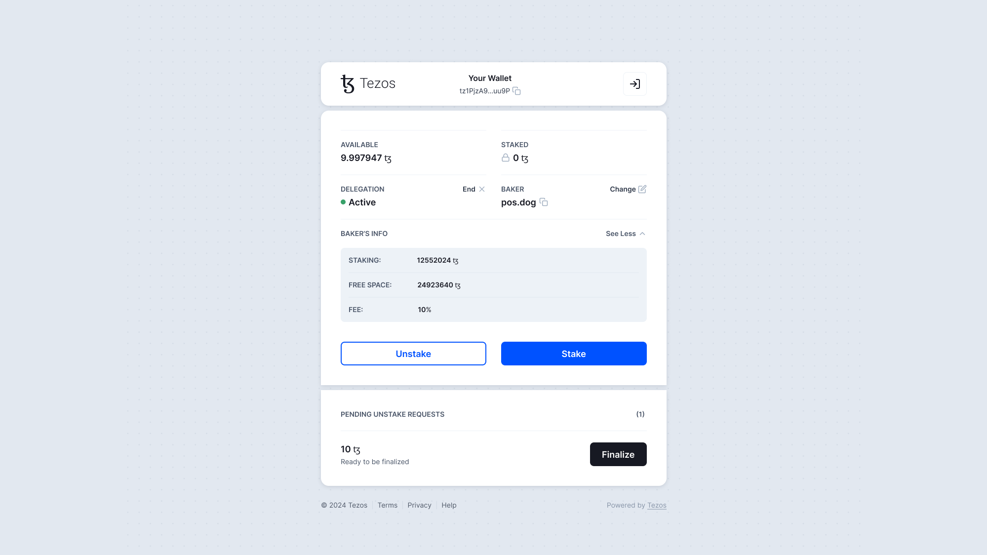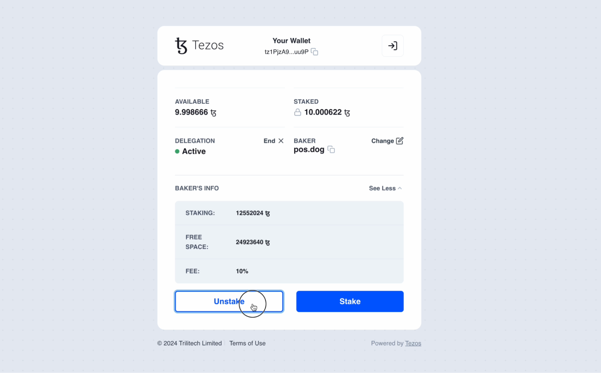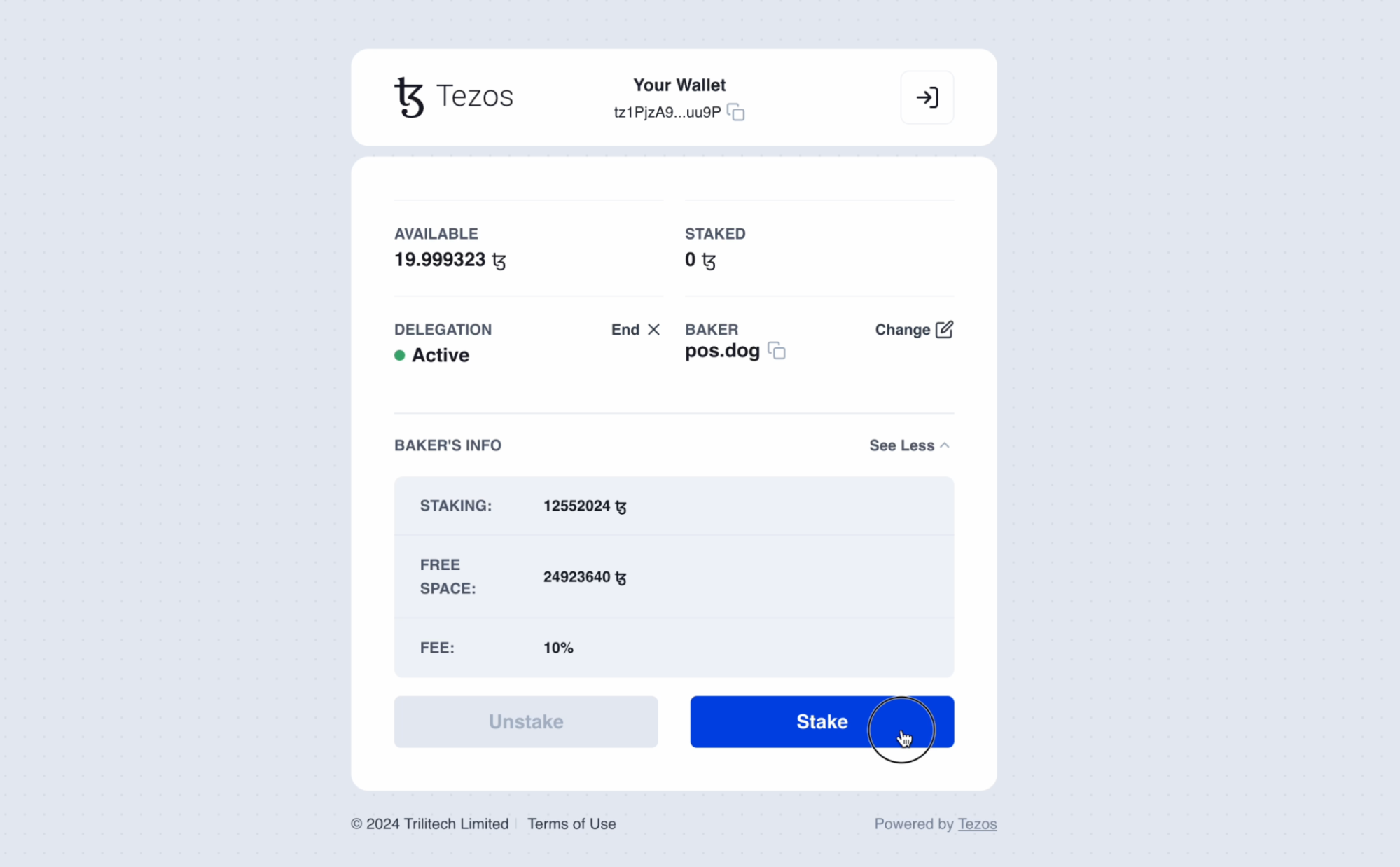That’s it! Your tez are now staked and earning rewards.