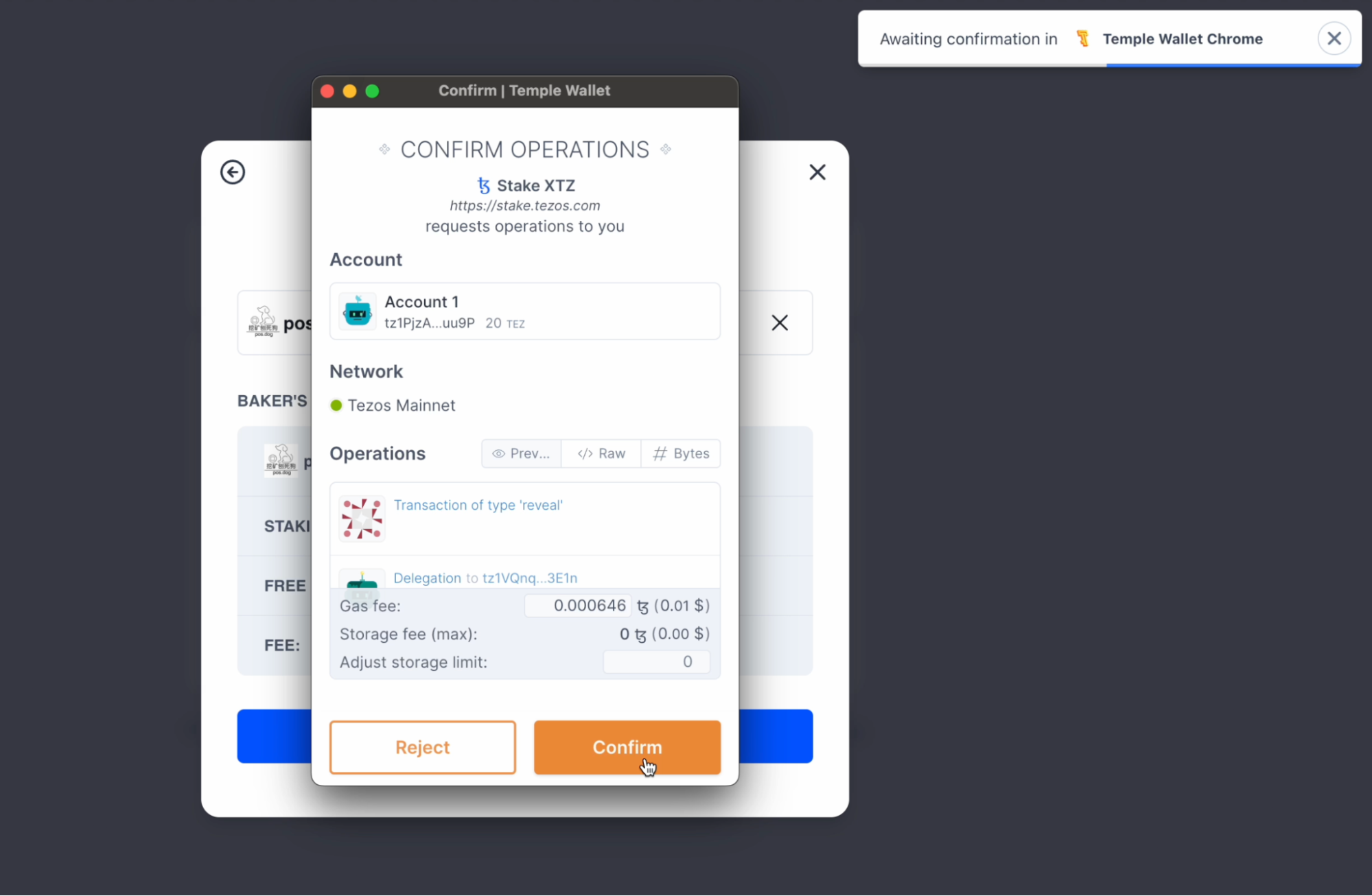 Confirm the delegation and wait a few seconds.