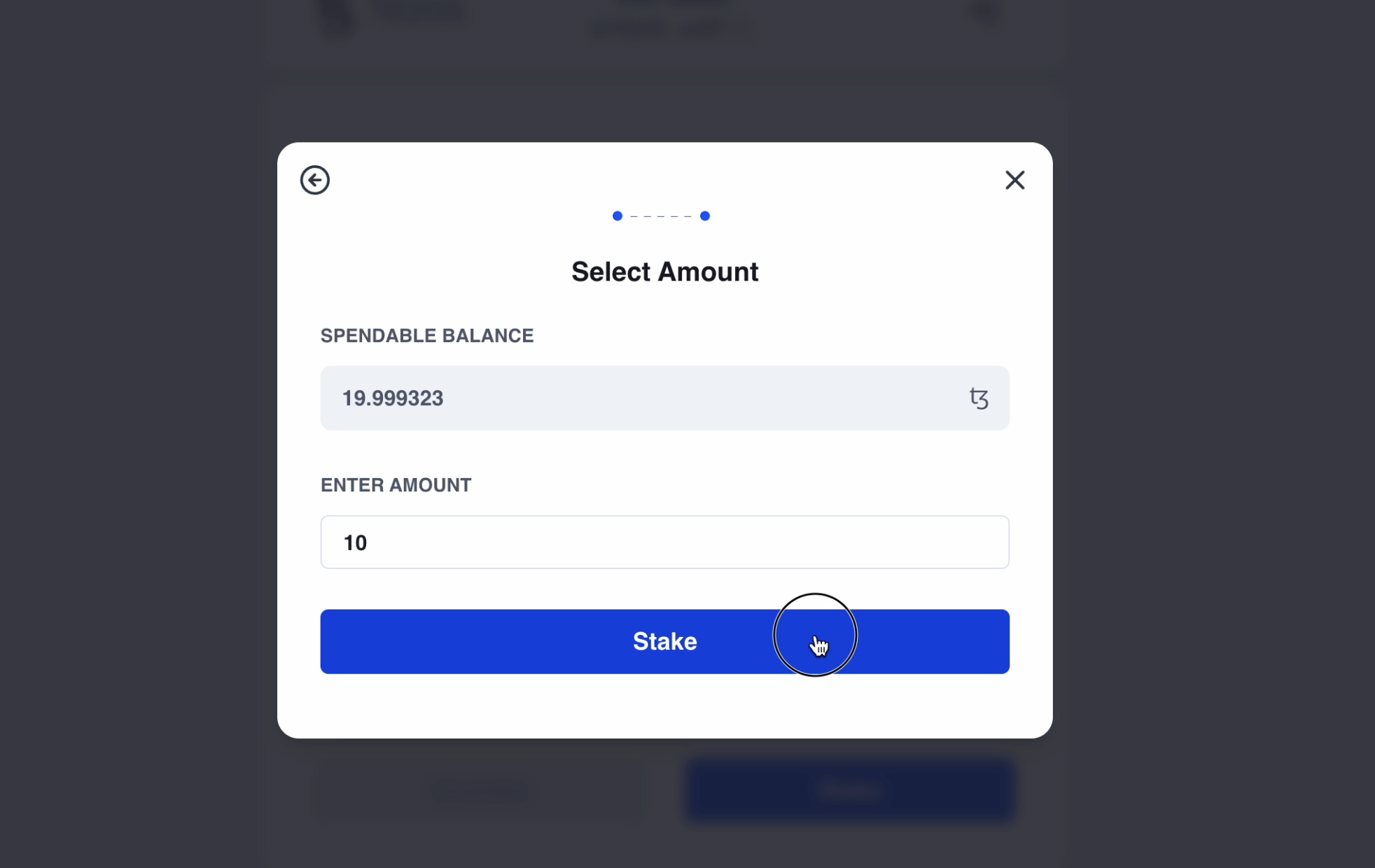Enter the amount of tez you’d like to stake.