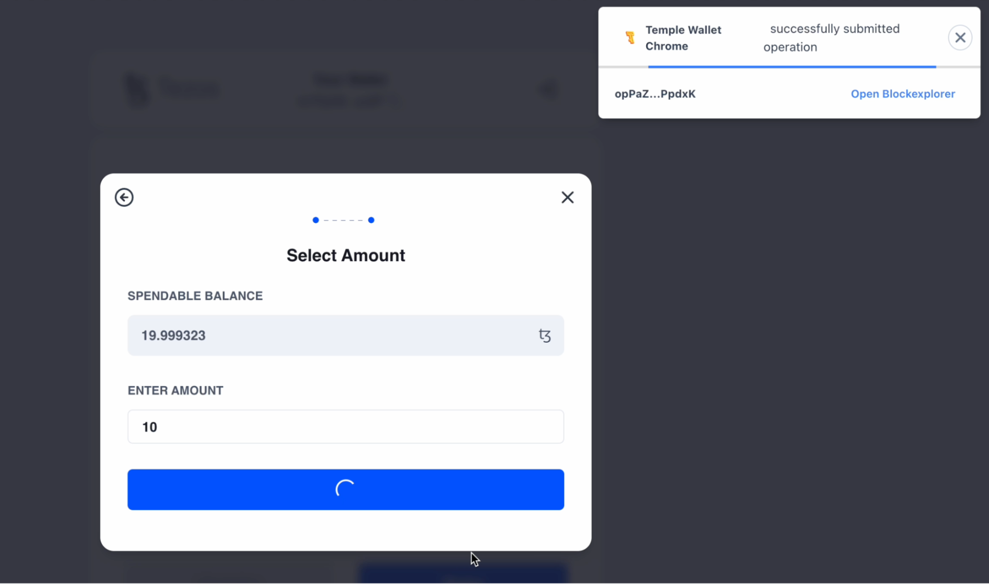 Confirm the operation in your wallet and wait a few seconds for the transaction to go through.
