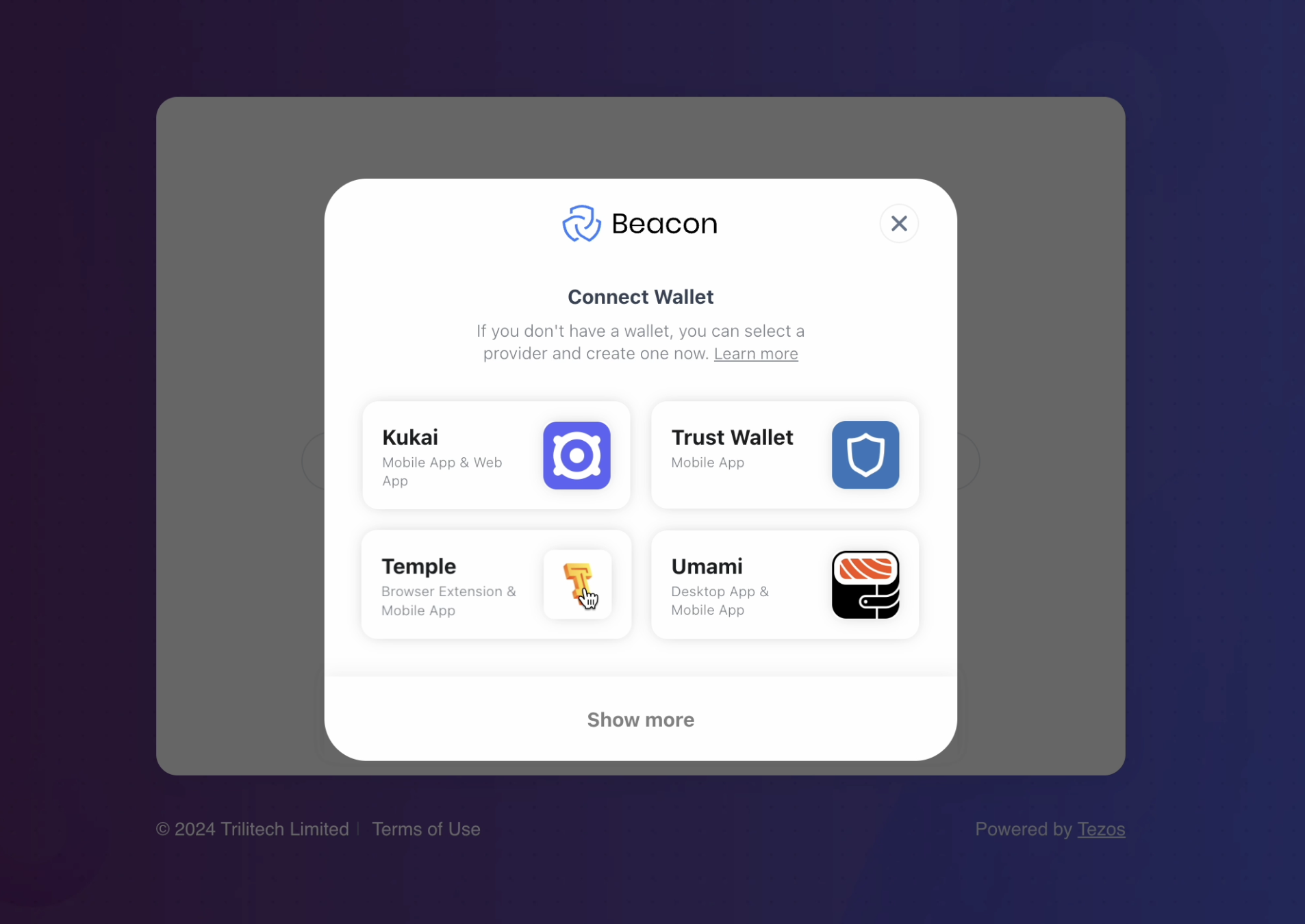 Before you start, make sure you have tez tokens in a supported wallet such as Kukai, Temple, Trust Wallet, or Umami Wallet.