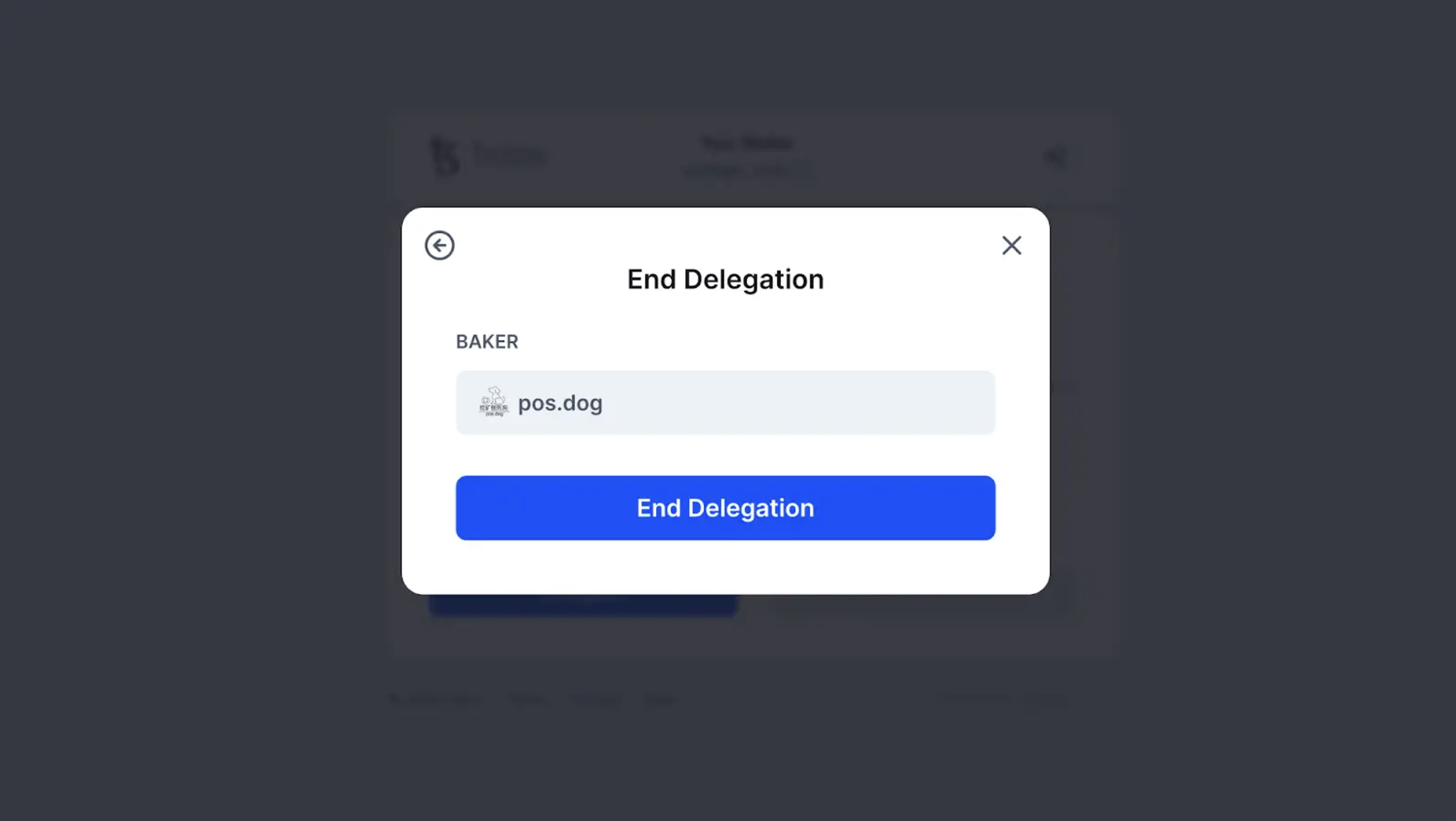 A pop-up should now appear, indicating the name of your baker. Click on End Delegation to confirm.