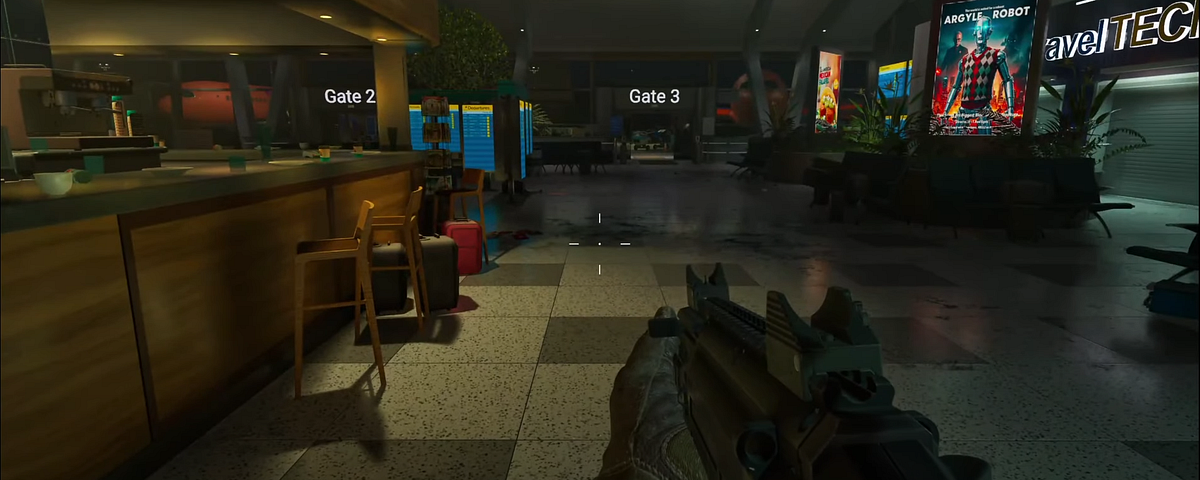 Locations like this abandoned terminal are fully explorable. Enemies can appear at any time, and missions often cross paths here.
