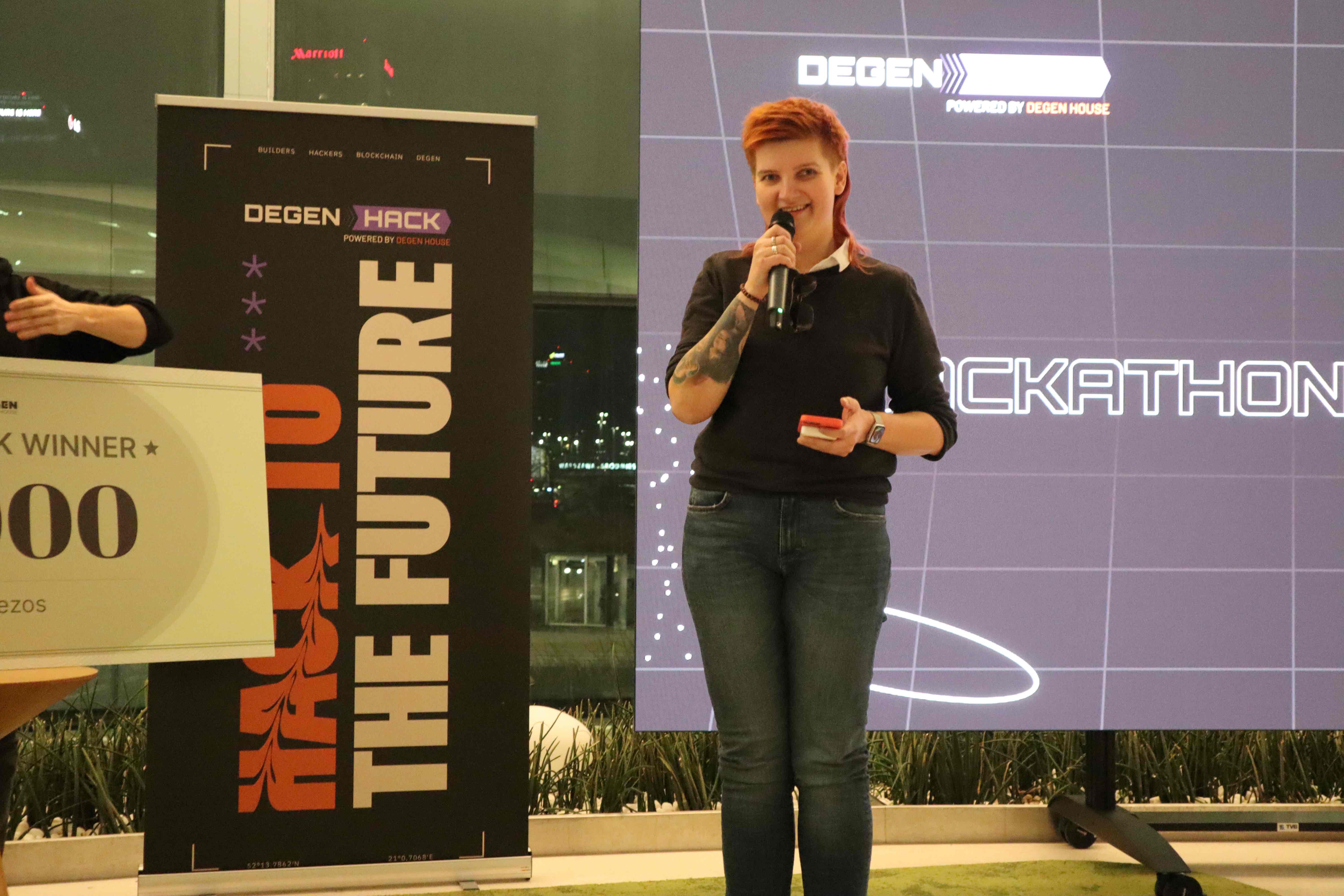Degen House’s hackathon, DEGEN HACK was a blend of conference and hands-on development focused on real-world applications of blockchain technology. The event attracted over 250 participants, including developers, founders, and dApp enthusiasts exploring various blockchain tracks. Notably seven projects built on the Tezos Network were submitted in just two and a half days, but there could only be three winners.