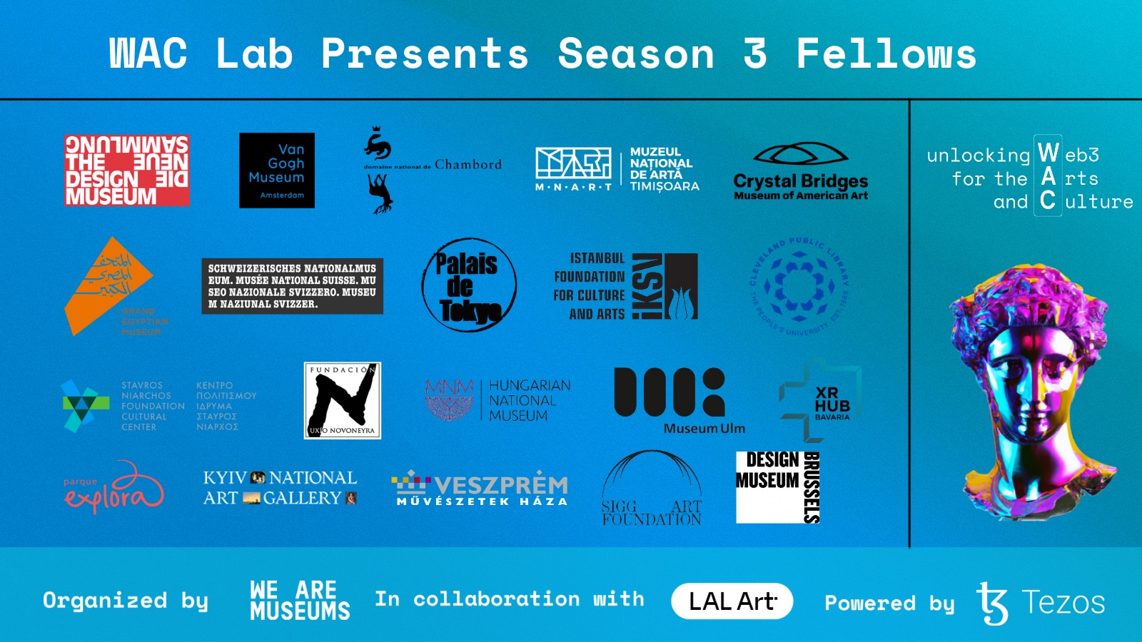 Organized by We Are Museums, with the generous support of the Tezos Foundation, and in partnership with LAL ART, WAC Lab proudly unveils the selection of cultural institutions that will soon shape the future of web3: