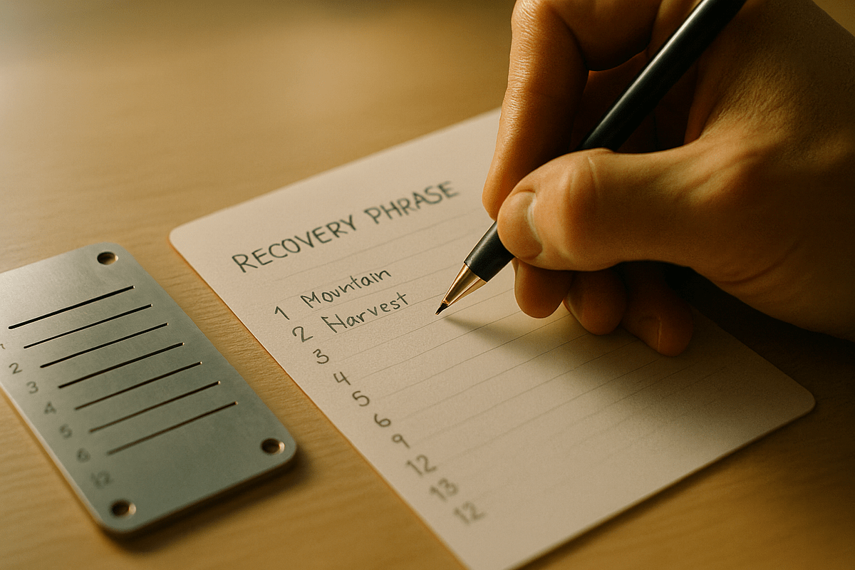 The safest way to back it up is still the simplest, write it down on paper, and keep it somewhere offline and safe, preferably in two or three different locations. Avoid storing it on your phone, taking screenshots, or uploading it to the cloud. Those shortcuts are how most “I got hacked” stories begin.
